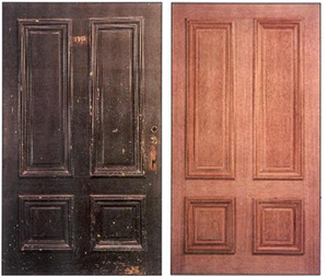 The door on the right is a 60-minute fire-rated classic stile and rail wood door from The Maiman Company that was installed in the building in 1997 as a replacement. If we can do this, just think what we can do for your restoration project.