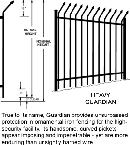 BFC HEAVY FENCE STYLES WELDED STEEL CONSTRUCTION PROVIDES OPTIMUM STRENGTH BFC Heavy and Extra-Heavy Grade Iron Fencing continues to be the first choice of specifiers of true security fencing. BFC’s all-welded construction ensures durability and rigidity that "erector-set" type fence can not produce. BFC gladly modifies any of these styles to meet clients’ custom requirements.