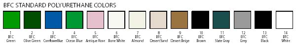 TWO COAT ENAMEL After fabrication, materials are power washed in an iron phosphate solution and receive one spray coat shop primer and spray coat gloss black enamel. POLYESTER POWDER COATING After fabrication, materials are power washed in an iron phosphate solution and receive one coat polyester powder. ONE COAT ENAMEL After fabrication, materials are power washed in an iron phosphate solution and receive one coat gloss black enamel. This one-coat system is intended as a primer and it is recommended that a top coat be applied. * BFC Tacoma manufacturing facility produces only pre-galvanized tubing with one spray coat shop primer and one spray coat black enamel. The finishes listed are available from the Tacoma manufacturing facility by special order only.