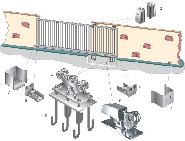 BOTTOM TRACK CANTILEVER GATE SYSTEM Cantilever Gate Specifications Example: All items are galvanized and recommended finish is applied with matching colors to choose. System Components: