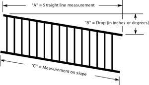 Bias Panels Bias panels are made on an angle to match the ground contours. Such a panel is used when the customer does not want the fence to step or when over the length of the panel, there is more than a 4" drop (for Regal, Napoleon or Empire styles) and more than a 2" drop (for Aristocrat and Modern styles) in question. Measure the length of the biased panel to the next foot and be sure to include a post at the top and the bottom of the bias. Include the dimensions shown in the illustration to the right.