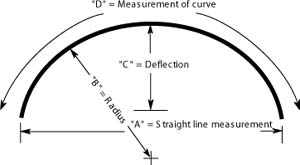 Curved or Arched Panels Curved panels are used to soften a corner or to match an existing design or to create a soft flowing fence line. Be sure to include the measurements indicated by the illustration to the right. Show dimensions on the plan if curved panel and on the elevation if arched panel.