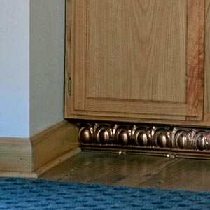 Pressed Metal Toe-KicksThe area under cabinets is often forgotten. Now M-Boss Inc. provides a decorative, durable and functional trim that withstands the daily grind of kicks. M-Boss Inc. resin fortified toe-kick moldings are perfectly sized to fit under a standard cabinet or vanity and come in over 45 finishes to coordinate with any decorating style. Available in nominal 4’ lengths and easily cut/mitered with any close-tooth saw blade. Pressed Metal Chair Rails Chair rails have been a decorating and functional mainstay for many years. They are a beautiful accent to any room and, they protect the wall from scuffs and dents from the backs of chairs. They also provide a means to separate two different colors or finishes on a wall. M-Boss Inc. chair rail moldings are resin fortified to provide superior dent-resistance. They can be either nailed or glued to the wall and are available in 4’ nominal lengths; and come in a wide array of patterns, widths and finishes to complement any decorating style.