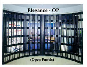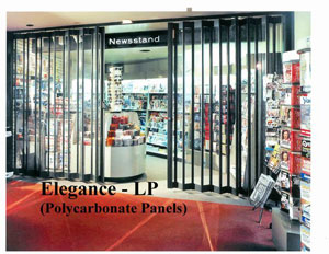 The Elegance-LP "Lexan® Panel". is part of the Elegance family of products, utilizing a full height aluminum hinged panel with 4 5/8" wide polycarbonate inserts, which offer excellent visibility and security but with less weight than our Elegance with Tempered Glass Panel inserts. Elegance-SP "Sold Panel"Elegance-SP "Solid Panel" is part of the Elegance family of products, utilizing a full height aluminum hinged panel with 4 5/8" wide solid aluminum inserts to completely secure the merchandise behind the closure and reduce the possibility of intrusion, by not displaying what is exactly behind the closure. Centurion "Checkerboard Pattern"The Centurion checkerboard design provides a good combination of security and visibility. Its sturdy pattern is made of extruded aluminum vertical panels hinged to steel rods for extra strength. The exclusive scissor-link folding mechanism gives an open appearance from top to bottom. Available in 6", 9", 12" and 15" pattern.