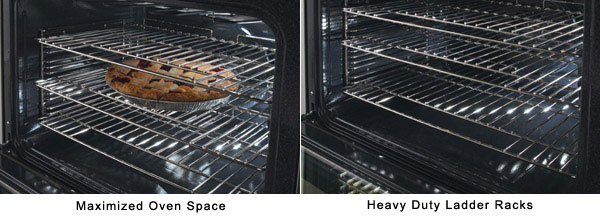 - Three nickel-plated, heavy-duty oven racks with handles and 13 individual