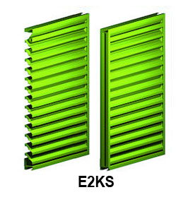 E2KS Storm Blade is a 2" deep thin line louver with a storm (baffle) blade. This louver style is ideal for a clean architectural appearance at a low cost. If you are intending the louvers to be used for general ventilation or air exhaust, this is the right choice. Deeper framed models are also available (E4KS). Louvers with a higher performance rating - more free area and lower pressure drop - are also available (E4KP, E6KP).
