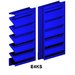 E4KS Storm Blade is a 4" deep louver with a storm (baffle) blade. This louver style is ideal for a clean architectural appearance at a low cost. If you are intending the louvers to be used for general ventilation or air exhaust, this is the right choice. Louvers with a higher performance rating - more free area and lower pressure drop - are also available (E4KP, E6KP).
