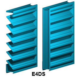 E4DS Drainable Blade is a 4" deep louver with a drainable blade feature to channel water away from the blades. This feature allows higher air intake velocities before entraining water. If your application is air intake, consider this or other drainable louvers first. If this louver will not handle your intake velocities, consider a deeper louver, a high performance louver, or a wind driven rain louver instead (E4DP, E6DP, E6WH).