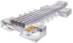 The Wabo®StripSeal system is a unique concept for effectively sealing expansion joints in bridges and structures with movements up to five inches. Elastomeric seals lock into a machined steel cavity for a watertight connection.