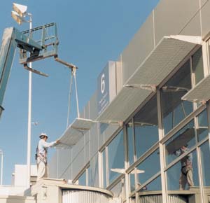 We also offer custom colors on a minimum order basis. Please contact Ametco® for additional information. Finish Warranty The warranty for the powder coated finish is 20 years. The polyester coated galvanized metal remains corrosion free for years. Performance properties for the polyester coating are as follows: WEATHERABILITY: (ASTM D822) After one year exposure in South Florida with panels facing south and tilted at a 45 degree angle, a high gloss white polyester coating retains 88% gloss (gloss readings obtained on washed panels). No film failure. A 2-part polyurethane coat on top of hot dip galvanized is used when Sunshades are too large to be powder coated. Ametco® Mfg. Corp. certifies that its Sun Shades are free from defects in material and workmanship. The polyester coated Sunshades are guaranteed not to crack, peel or blister for a period of 20 years. Accidental damages, defects resulting from improper installation and damage from vandalism or abuse are not included. Warranty is limited to a prorated value of the coating, not to exceed the original value of the coating. Or, at Ametco®’s discretion, re-coating the Sunshade but not to include labor removal or reinstallation. TECHNICAL SUPPORT Applicable Standards: Aluminum: Stainless Steel: Carbon Steel Bar Stock: ASTM A 36 Fabrication: ANSI/AWS D1.1 Hot-Dip Galvanized: ASTM A 123 Cadmium Plating: ANSI/ASTM A 165-71, Type NS with a clear chromate finish Powder Coating Hardness: ASTM D 3363; Direct impact ASTM D 2793. Saltspray resistance test ASTM B 117 For installation details and guide specifications, call Ametco® for technical assistance. CODES and CERTIFICATIONS AVAILABILITY and COST Availability: Ametco® Sunshade panels are fabricated and coated before being shipped throughout the United States. Cost: Costs are quoted on a job basis due to varying requirements of each project. Cost may be obtained by calling Ametco® Manufacturing Corp. at (800) 321-7042. OPERATION and MAINTENANCE |