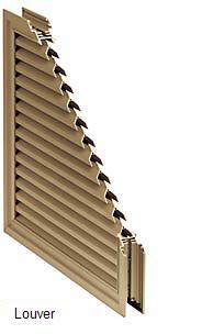 Louvers We custom-manufacture louvers to specification for mounting in doors, transoms, and side lites. Our louver units utilize an inverted “Y”-type fixed vane. For added security and aesthetics, vanes are secured by rivets around the outside of the frame, inaccessible and hidden from view. Insect screens are also available. Louvers are available in any of our anodized finishes, or any paint color.