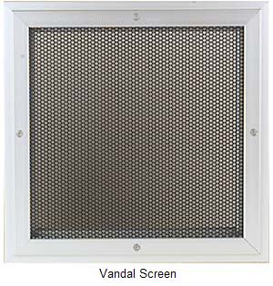 Vandal Screen The SL-SG350 Vandal Screen is designed for applications that require a combination of moderate security, excellent visibility, and the convenience of easy removal for glass cleaning. The frame if the vandal screen is manufactured of anodized or painted aluminum and screws into the FL-Series Vision Lite Kit with self-retaining, tamper-proof pin-torx fasteners. The matte black powder coated stainless steel, round-hole mesh screen has 63% open area to maximize vision. Our Vandal Screen is compatible with both 1/4" and 1" glazing, and can be custom-fabricated for curves and angle corners for improved design flexibility. Vision Lites