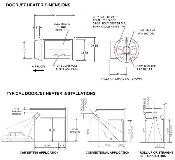 DJTE - Overhead Door Gas Heaters DoorJet Heaters ![]() APPLICATIONS STOPS OPEN DOOR CHILLS