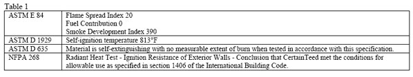 STUDfinder™: The patented STUDfinder Installation System combines precisely engineered nail slot locations with graphics. Nail slots are positioned 16" on center to allow for alignment with studs. STUDfinder graphics centered at each slot provide a quick and easy guide to help locate studs. RigidForm™: Monogram RigidForm 220 technology has a stiff, double-thick .092" nail hem for a straighter-on-the-wall appearance and wind load performance. Lock: Uniquely designed for ease of installation, Monogram features the CertiLock™ locking system; a post-formed positive lock which provides for self-aligning installation. Properly installed panels will snap together with an audible click signaling that they are ready for nailing. Accessories: CertainTeed manufactures a wide range of siding accessories which are compatible with Monogram siding styles and colors. Accessory products include installation components, soffit, window and door trim, corner lineals, corner systems and decorative moldings. Composition: Monogram siding products are produced using CertaVin™ custom-formulated PVC resin. This resin is produced exclusively by CertainTeed, allowing CertainTeed to maintain the high quality of its siding products. CertainTeeds Monogram siding is in compliance with the ASTM Specification for Rigid Polyvinyl Chloride (PVC) siding D 3679. Technical Data: Monogram siding meets the weathering standard in ASTM D 3679 using ASTM D 1435 procedure. As shown in Table 1, Monogram siding is in compliance with ASTM Fire and Smoke procedures and meets or exceeds International Building Code requirements.