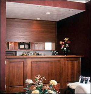 Architectural Specifications: Woodfold Roll-Up Doors shall be upward coiling style, unfinished (factory finish available at additional cost). Individual slats are interconnected using plastic coated aircraft grade stainless steel cable, fixed at top and bottom. Woodfold Roll-Up Doors shall be suspended from manufacturer-provided overhead coiling system utilizing manual, awning crank, or electric motor driven operation. All necessary hardware and materials shall be included for normal installation. FACTORY FINISH OPTION: Woodfold specializes in the finishing of quality hardwood products. We use only environmentally safe finishing materials. Our factory finish is available clear (non-tinted) or custom stained to match. A factory finish will provide years of service and durability. This option is available at additional cost. HOW TO ORDER: List hardwood species, list options required, list finished opening sizes; (A) Width: finished wall to finished wall (or jamb). (B) Height: counter/floor to top of opening. Specify Mounting Options: Wall mount or between jamb mount. (For wall mount, specify exposed or concealed lead rail.) Note: Minimum clearance is required. Specify Lock System: Cylinder lock, thumb turn, or slide bolt. Specify Operation: Manual operation, awning crank, or electric motor driven. Note: Detailed shop drawing forms available upon request. Approved shop drawing required for fabrication. Specify Finish: Specify unfinished (factory standard), factory clear finish or custom stain (sample for match required).