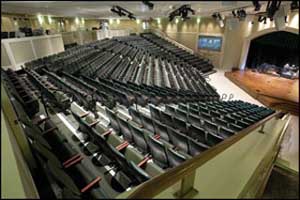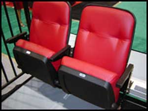 Nose-Mount Marquee Chair The Nose Mount auditorium chair offers the comfort and stability of a fixed auditorium chair with fully upholstered seat and back. The back folds to the rear to allow the platforms to telescope. This is a premium product that offers the very finest in comfort and aesthetics. Contact factory for details. |