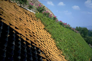 also provides a means of fully vegetating slope surfaces that otherwise could