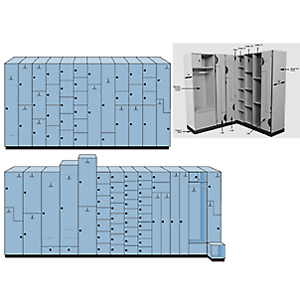 Ideal has carefully designed lockers and locker systems to fill the requirements of the client by providing flexibility and versatility for the architect and the interior designer. In addition to our standard locker configurations, we also provide custom design services. Additional shelves, interior accessories, choices of security locking systems are just a few of the customized options offered. SECURITY LOCKS Ideals Locking Systems for Specific Applications RECESSED PADLOCK HASP: Our most popular locking system is a padlock hasp recessed in the door to prevent damage of adjacent lockers. Also available with surface mounting. Use (RP) recessed padlock hasps or (SP) surface padlock hasps. SURFACE PADLOCK HASP: 1" x 4" trim plate with black knob is available in five powdercoat finishes: Black, Grey, White, Tan, or Brown. CAM PADLOCK HASP: Surface mounted, modern in appearance, available in two finishes: Bright Chrome or Bright Brass. Fits in standard keyed lock preparation. KEYED LOCK: We provide as standard a keying system capable of 400 codes, two keys per lock, and a master keying system. Chrome, brass, or black finishes are available. Use (KL) to specify keyed locks. DIAL COMBINATION LOCK: Our standard three position dial combination locksets are equipped with master key override and have the ability for changing to four individual combinations. Use (DC) to specify. PUSHBUTTON COMBO LOCK: The pushbutton lock has five buttons which will generate over 2000 different combinations. Push one or all five buttons at a time and change combinations as often as you like in a matter of seconds. Use (PC) to specify. CARD, TOKEN OR COIN OPERATED LOCKSETS: This lockset limits locker access to cardholding members or guests issued a token. For coin-operation select either coin-return or coin-deposit with options of one or two coins. Specify Card (CL), Token (TL), Coin Return (CR), or Coin Deposit (CD) and one (1) or two (2) coin operation. Example: (CD2) = Coin Deposit with two coins. DIGILOCK® KP, KT, AND TC SERIES: Latest in self-contained battery operated digital, keyless access control for locker doors. KP Series are for permanently assigned lockers. KT Series are for temporarily assigned lockers (day use). TC Series operates with a wand clip or keyring holder. Local building officials will eventually require your clubs to comply with The Americans with Disabilities Act of 1990 which requires the following: At least one of each type locker
