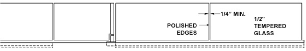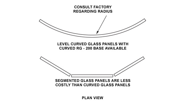 Railglass is constructed of tempered glass in any height up to 48" and lengths up to 60" with dimensional tolerance of plus 0" or minus 1/8" of the actual overall dimensions. |