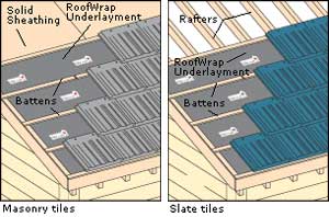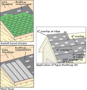 Typar RoofWrap 30 is a high strength polypropylene roofing underlayment. It's a tough, weather-resistant fabric, developed to protect homes under the harshest conditions in North America. The ideal choice under shingles, shakes, tiles, slate and metal roofs, it resists tearing away from nails-even in high winds.