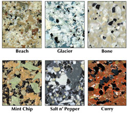 Vinyl Chip System: Includes primer, basecoat, vinyl chips and clear topcoat. The surface texture resists slipping and the clear topcoat makes it easy to clean.