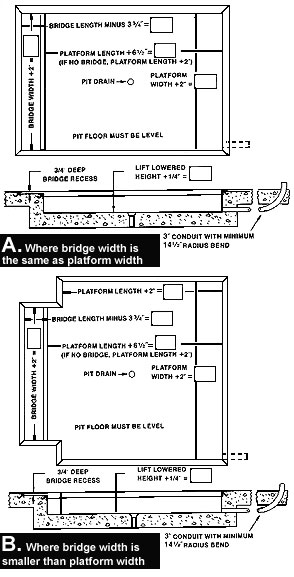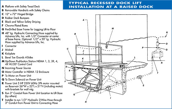 Pit mounted dock lifts have a travel of 58" unless shown otherwise.