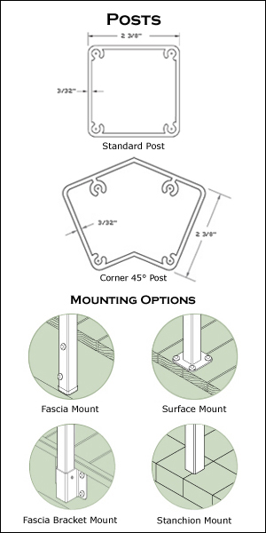fascia boards, joists or walls. Fascia Mount posts come with pre-drilled bolt