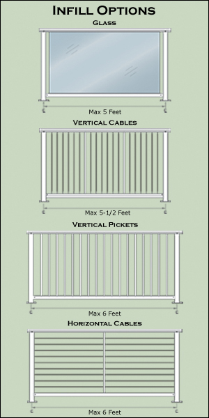 cable infill and glass infill (especially in regions prone to hurricanes).