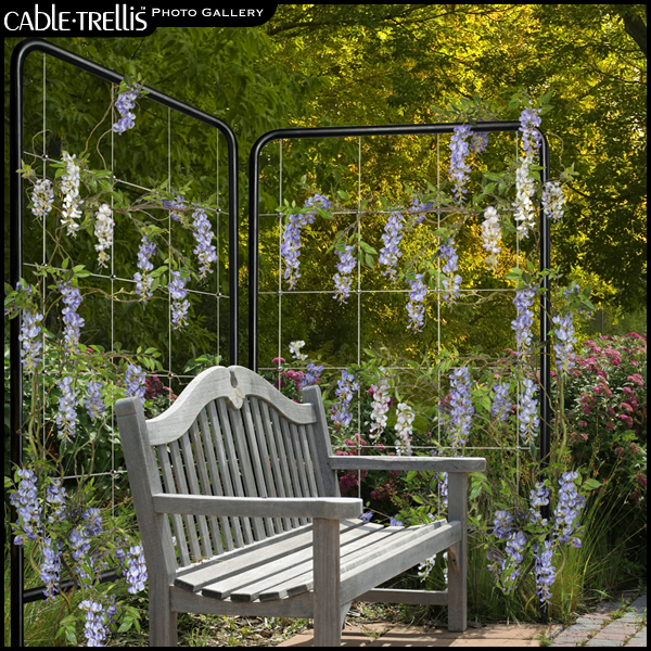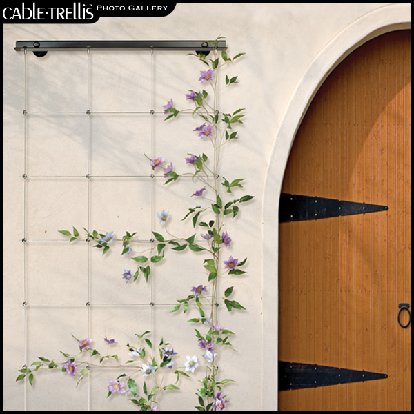 CableTrellis™ trellises can be utilitarian, decorative and even artistic. They can expand your garden space vertically and offer support for vines and vegetables. Wall mounted displays can turn an otherwise stark wall or fence into a colorful, textured backdrop while helping to minimize UV exposure and control ambient heat gain. Freestanding trellises with cascading greenery or fragrant flowers can make beautiful space-dividing screens, privacy barriers or sun shades. Trellises can even be used to frame a lovely view, direct foot traffic or create a cool, relaxing retreat or entertaining area. And at season’s end when the plants recede and the structure takes center stage, CableTrellis™ trellises will continue to provide a simple, elegant accent to your personal landscapes. Wherever your imagination takes you, CableTrellis™ can help you get there.