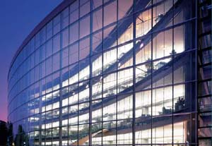 LSG Ratio: Using the Light to Solar Gain Ratio (LSG) allows performance comparisons to be made between glazing products, and highlights the standards set by PPG glasses. The LSG ratio is the ratio of visible light transmittance to solar heat gain coefficient. The higher the LSG ratio, the better the glazing is at reducing unwanted solar heat gain and maximizing desirable natural light transmittance. Excellent LSG ratios can be attained using spectrally selective tinted glasses and/or Solarban® Solar Control Low-E glasses. Solarban® 80 glass is designed to address the need of a single product for superior solar control, high visible light transmittance and aesthetic appeal. Like no other glass, Solarban® 80 glass creates a dynamic exterior aesthetic. A sample viewed indoors provides a glimpse of the same steel jade appearance exhibited by Solarban® 80 glass when shaded from the sun. When the glass is bathed in direct sunlight, the glass transforms into a satin reflective finish, with true color reflected images...of the sky that looks blue and trees and landscaping that look green. Solarban® 80 glass has a Light to Solar Gain (LSG) Ratio* of an unbeatable 1.96, placing it at the top of its class.