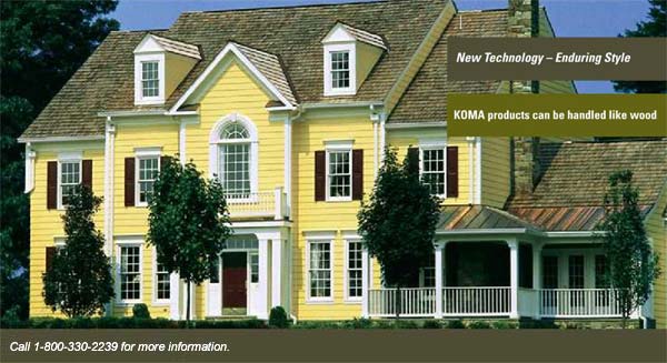 Ideal for fascia, decorative trim and columns, fluted and flat casings, custom millwork, moldings, soffits and many other applications. They never need replacing. A finished house is a builder's most important source of new business. Give your projects the endurance of KOMA® Trimboards, and they'll speak of you for years to come. |