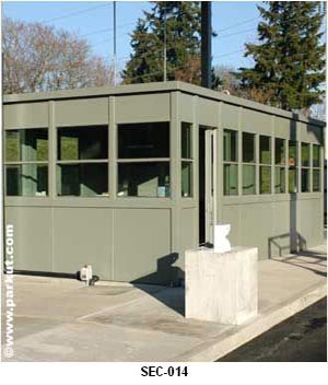 SEC-014 Guards have access to both entry & exit lanes for vehicle inspections. A waiting area has been incorporated for those visitors that must have escorted limited access to the site. The booth is equipped with a dual zone split pack HVAC system for independent heating and cooling for the individual areas of the booth. The UL classified electrical system has been customized to meet the customers specific site needs and Par-Kut can do the same for your project!