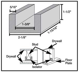 Floor/ceiling wood beam isolators, wood stud isolation. |