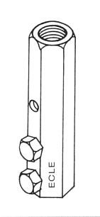 Hex brass 2-bolt splicer for cable to threaded rod or air terminal. 5/16-18 stainless steel bolts. 2-7/8 x 3/4 inch hex (7.3 x 2.15 cm); approximately 5 oz. (142 g). Use suffix 3/8,1/2 or 5/8 inch to denote air terminal thread size.