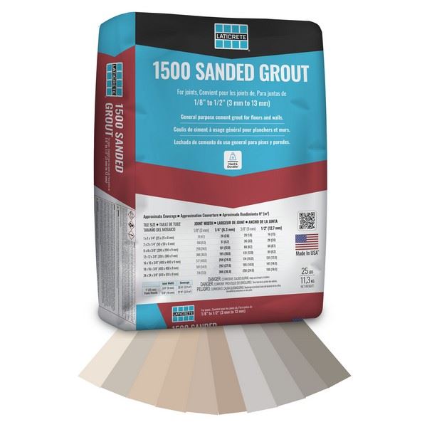 1500 Sanded Grout is a factory prepared grout designed to be mixed with water. 1500 Sanded Grout is formulated from a blend of high strength portland cement, graded aggregates, polymers and color-fast pigments and provides a grout joint that is dense, hard and durable.