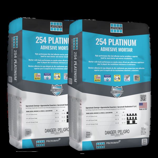 The ultimate one-step, polymer fortified, thin-set mortar for interior and exterior installation of ceramic tile, porcelain tile, Gauged Porcelain Tile Panels/Slabs (GPTP), stone, quarry tile, pavers and brick. 254 Platinum, designed to just mix with water, has a long open time with unsurpassed adhesion and workability. 254 PLATINUMTM is a LATICRETE approved substitute for 211 Powder mixed with 4237 Latex Additive.
