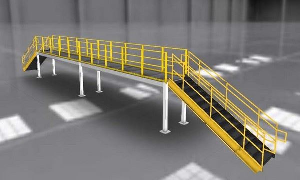 The Mezzanine Access Ship Ladder by UPNOVR, Inc. is designed to meet or exceed OSHA and ANSI A14.3 standards. The Mezzanine Access Ship Ladder is manufactured with non-spark, high-strength materials to applicable ASTM standards, with standard mill finish. Standard tread and platform width is 24”, made from deep serrated material for sure-footed climbing, with a minimum 500 pound loading capacity. Hand railing is 1-1/4”aluminum schedule 40 pipe on both sides, extending 42” above the ladder to conform to OSHA standards. The Mezzanine Access Ship Ladder is designed to provide a more comfortable access method to roof or mezzanine areas when traditional ladder rungs are not appropriate. Ladder angle may be specified according to use and access requirements before manufacture. Standard wall mounting brackets are included with all ladders. Abrasive filled treads (type SNAT) are available as an optional item.