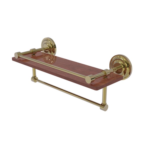Que New Collection IPE Ironwood Shelf with Gallery Rail and Towel Bar - Satin Brass