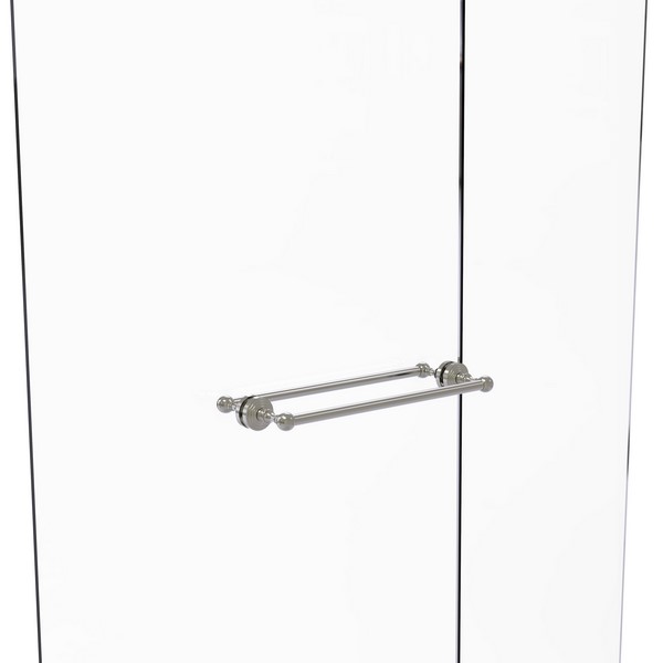 This beautiful shower door towel bar adds elegance and convenience to any bathroom décor. The towel bar features a towel bar for one side of the glass while decorative plates are provided for installation on the opposite side of the glass shower door or wall. Securely attaching to any glass surface, the towel bar complements your bathroom décor ranging from modern to traditional and all styles in between. Made from high quality, heavy duty solid brass materials and provided with your choice of any of our lifetime designer finishes, this stylish towel holder is extremely attractive yet highly functional. The shower door towel bar comes with the towel bar and all the hardware necessary for installation. Whether your bath decor features a modern contemporary style or more traditional design, the Allied Brass Collection of products has bath accessories to meet your design and decorating needs. All of the Allied Brass Collection of products come with a limited lifetime warranty.