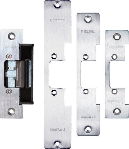 | CX-ED1079 | Low Profile Grade 1 'Universal' electric strike, 'Univ' Strike, 1/2" to 5/8" throw, 12/24V AC/DC, fail safe/fail secure operation, horizontal adjustment, and 3 stainless steel faceplates (CX-ESP1B, CX-ESP3B & CX-ESP4B) Dimensions: 3.25"L x 10.51"W x 2.25"H Weight: 1.25lbs. UPC:670454193445 Country of Origin:TWN |