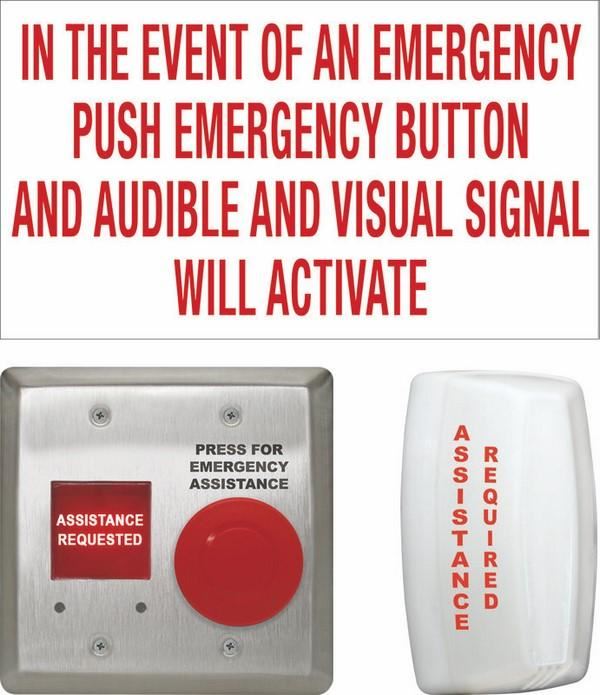 | CM-SE21B | English sign, white self adhesive vinyl, ‘IN THE EVENT OF AN EMERGENCY PUSH EMERGENCY BUTTON AND AUDIBLE AND VISUAL SIGNAL WILL ACTIVATE’ (6” X 10 5/8” (152mm X 270mm) Dimensions: 10.5"L x 1"W x 7"H Weight: 0.2lbs. UPC:670454177872 Country of Origin:Canada |