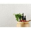 Personalize your space with the 11 x 13 La Belle Purity Penny Ceramic Mosaic. This white multi finish finish tile will make a great impact in small areas like the bathroom, den, or other overlooked spaces.