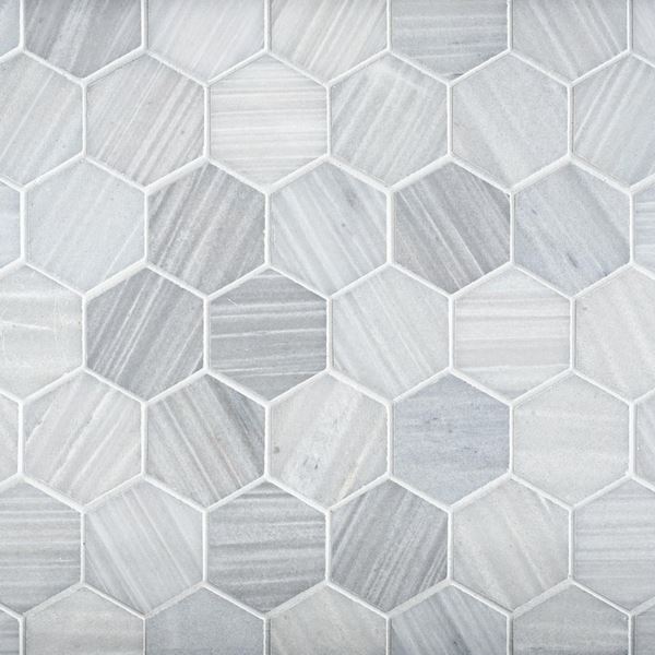 Liven up any room with this Athena 2 in. Hexagon Polished Marble Mosaic. This 11 x 11 decorative tile comes in gray and has a polished or high gloss finish. With stunning veining that comes from the natural wonders of this earth, marble can make a gorgeous fashion statement throughout your home.