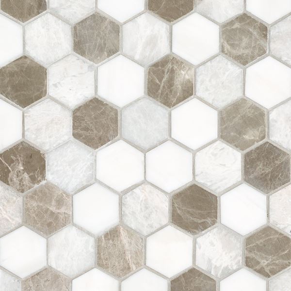 The Iceberg Blend Marble 2 in. Hexagon Mosaic in multi color is as timeless as it is versatile. Its durability and easy maintenance make it a practical and attractive addition to almost any room, and you’ll have an effortlessly elegant aesthetic.