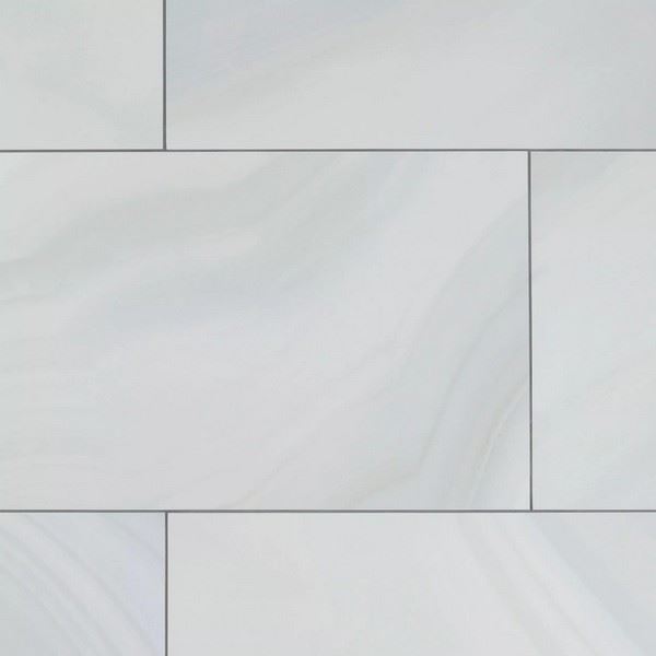 With a polished or high gloss finish, this white Montevino Onyx Polished Porcelain Tile is 19 x 39.