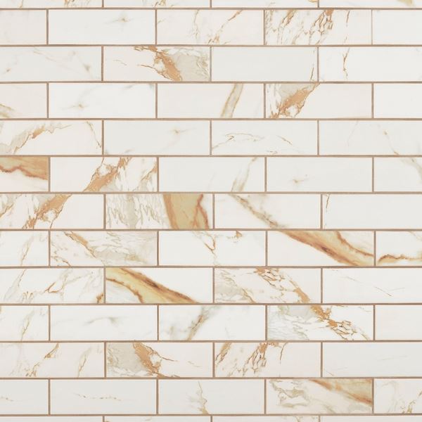 For an elevated look to your design, choose the Calcatta Oro II Ceramic Wall Tile with a matte finish. Use this white tile to add new visual interest in any space like the bathroom, kitchen, living room, and more.