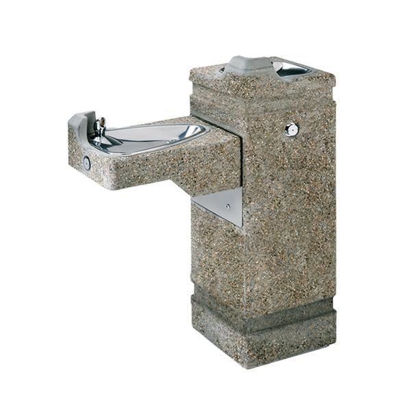 The Haws 3060 vandal-resistant outdoor concrete pedestal drinking fountain incorporates a patented stainless steel push-button valve assembly allowing for front access stream adjustment as well as cartridge and strainer access. This pedestal mounted fountain offers the 'only' all stainless-steel valve body that is machined out of solid bar stock, is fully serviceable through the front of the push button assembly offering access to the water control cartridge and integral water supply strainer, and has front access to the water stream height adjustment for easy maintenance without having to remove the valve. Equipped with vandal resistant components, this fountain is not easily disrupted, quickly discouraging the worst of vandals.