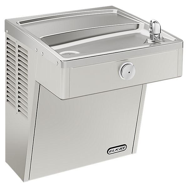SpecificationsModel 1201S indoor wall-mount ADA stainless steel water cooler shall include an ASHRAE compliant, hermetically sealed R-134a refrigeration system with thermostat. Unit features a unique, modern design with 304 satin finish stainless steel outer shell. The system includes an electronic front push bar controlled solenoid valve, and a .45 gpm self-regulating, anti-rotational bubbler head with flexible antimicrobial mouth guard, and enhanced tankless evaporator coil using thermal mass cooling technology. 115 Volts, 60Hz, rated watts: 350, full load amps: 5. Dimensions: (L x W x H) 18-3/4 x 15-11/16 x 26-1/4"
