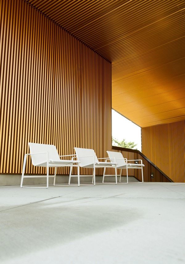 The Cochran lounge chair with arms is designed for relaxing, socializing and sitting comfortably with a phone or laptop. Wider than the typical chair, it feels generous and expansive. Its sculpted continuous loop cast frame supports an aluminum rail that stretches and holds the seating fabric and is secured to the frame with discreet connections.