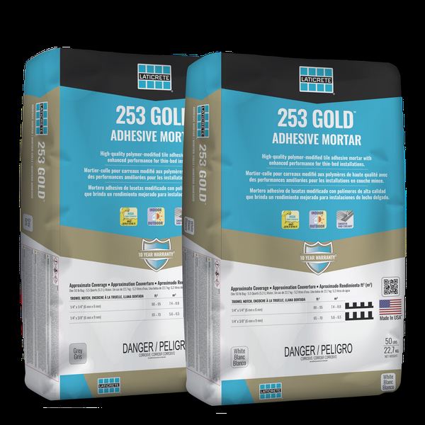 253 GOLD™ is a superior polymer fortified bagged cementitious thin-set powder to be mixed with water to install ceramic tile and natural stone using the thin-set method of installation.